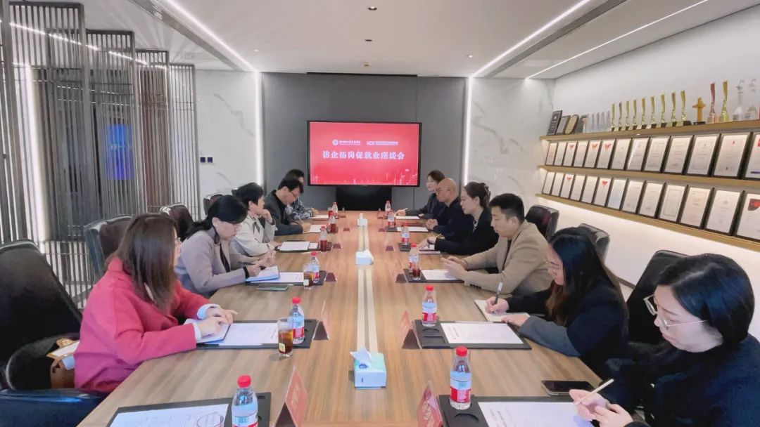 随后,双方在公司多功能厅开展“访企拓岗促就业”专项座谈会。刘媛董事长首先对各位领导一行的到访表示热烈欢迎,同时表示ACE赫宸设计作为目前华北地区规模最大的室内设计公司,近年来积极推进产教融合的实践教学,已和多所高校达成战略合作,建立起多个大学生社会实践基地、创意设计产业学院和教学实习基地,通过设置专业课程,与院校协同育人培养专业人才,为行业培养新生力量,推动行业的高质量发展。希望以此次座谈为契机,增进双方之间的联系联动,在产教融合、就业需求、实习实训等方面实现合作共赢。
