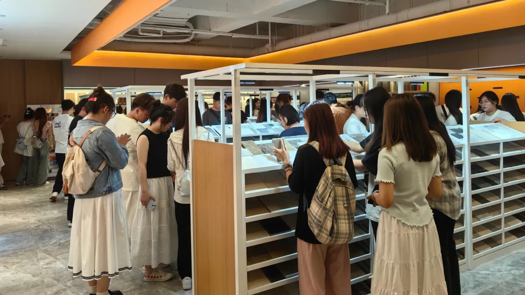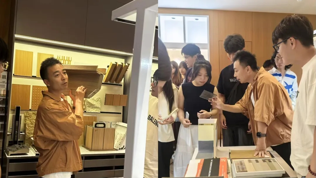 山东省装饰协会副会长、聊城市室内设计行业协会会长、聊城大学东昌学院教师韩飞在ACE赫宸设计的智能化物料间和多功能厅,为学生现场讲述了一堂生动的《装饰材料认知与应用》。